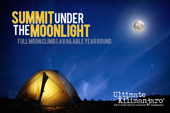 To summit during a full moon, a 7-day climb should start 5 days prior to the full moon date. It is not necessary to summit on the exact full moon date to take advantage of moonlight. A summit on the day before or day after is also beneficial. We offer several group climbs with full moon summits every month during the dry season. These dates tend to be the first to book completely full well in advance.